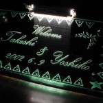 結婚披露宴パーティー用のwelcomeボードです。 ガラスとステンレス(鏡面仕上げ)を重ね、試験管の一輪挿しをアレンジしました。