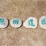 河原の石に彫刻・・・ 穴を開けて吊り下げます。