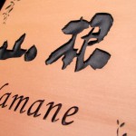 ヒロノクラフトオリジナルの筆書体です。 漢字は大胆に彫刻します。 施工写真を送っていただきました。 木製の玄関がいい感じですね(^^♪ ありがとうございました。