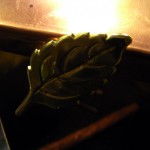 味わいのあるタイルとクリスタルガラスを重ね、手作りの銅のアイビーをアレンジしました。 光の当たり方で、いろんな表情が現れます(^^♪