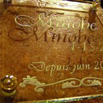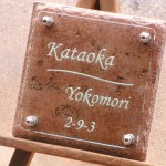 味わいのあるタイル(茶色)に、オリジナルの筆書体で名前を刻みました。