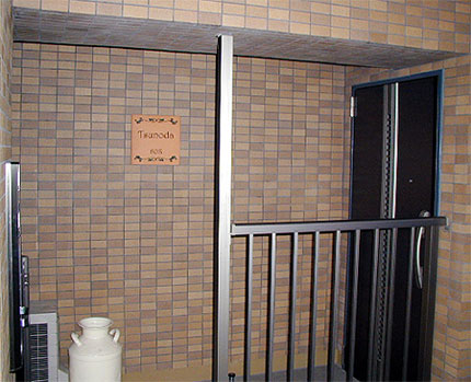 マンションの玄関ポーチ 2002/3/31 日曜日2012/8/23 木曜日 by miyasu テラコッタ表札 テラコッタの表札を取り付けました。 マンションという同じような玄関に個性が出来て、大変喜んでいただけました。 お問い合せ用URL : お問い合せの際に上記URLをコピーして『お問い合せ内容』に貼り付けて頂ければ幸いです