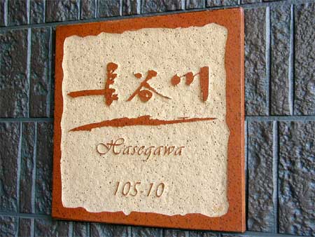 テラコッタ表札 浮き彫り 2002/4/27 土曜日2012/8/23 木曜日 by miyasu テラコッタ表札 色の濃いテラコッタに筆文字を浮き彫りしました。 本日、取り付けに行ってきました。 お問い合せ用URL : お問い合せの際に上記URLをコピーして『お問い合せ内容』に貼り付けて頂ければ幸いです