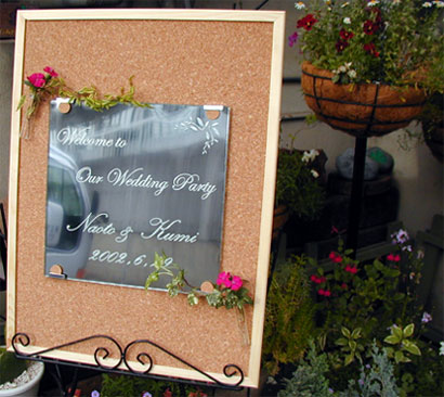 welcomeボード 2002/5/1 水曜日2012/12/3 月曜日 by miyasu オーダーサイン welcomeボード 結婚披露宴パーティー用のwelcomeボードです。 ガラスとステンレス(鏡面仕上げ)を重ね、試験管の一輪挿しをアレンジしました。 お問い合せ用URL : お問い合せの際に上記URLをコピーして『お問い合せ内容』に貼り付けて頂ければ幸いです