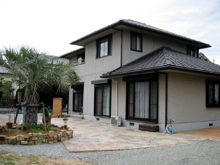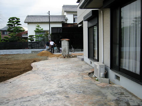 K邸外構工事 2002/5/11 土曜日2012/8/24 金曜日 by miyasu ガーデン&エクステリア もうすぐ完成です アプローチはオリジナル色 耐火レンガと合うようにコンクリートに着色するグランドコンクリート(神戸ガーデンハウス)で製作しました。 アプローチはキャンパス・・・ 石質をイメージしたグランドコンクリート この銅の表札を取り付けます 仕上がりをお楽しみに・・・ 門柱は茶色のこてムラ仕上げ 銅製ポストと表札がここに・・・ お問い合せ用URL : お問い合せの際に上記URLをコピーして『お問い合せ内容』に貼り付けて頂ければ幸いです