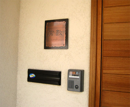太陽の住む家 2002/6/2 日曜日2012/8/24 金曜日 by miyasu 取付作業 表札の取り付けに行ってきました。 木造で憩いのある機能的な家でした。 自然素材の家には銅の表札が良く合います。 銅の風化を楽しんでください・・・ お問い合せ用URL : お問い合せの際に上記URLをコピーして『お問い合せ内容』に貼り付けて頂ければ幸いです