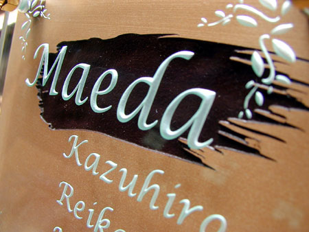 クリスタルガラス表札 2002/6/11 火曜日2012/9/20 木曜日 by miyasu クリスタルガラス表札 名前がわかりやすいようにテラコッタにも影を彫刻しました。 お問い合せ用URL : お問い合せの際に上記URLをコピーして『お問い合せ内容』に貼り付けて頂ければ幸いです
