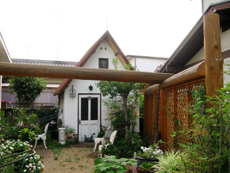 時を経て風化したガーデンアイテムが、穏やかで落ち着いた空間を作り出しています。