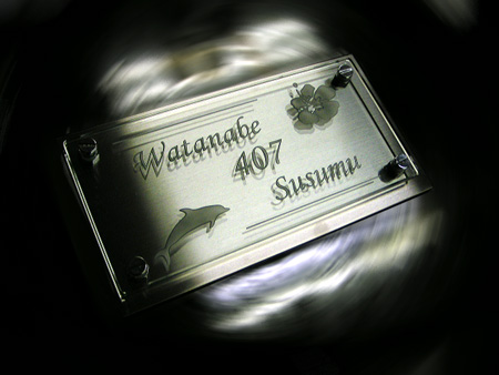 クリスタルガラス表札 2002/12/6 金曜日2012/9/20 木曜日 by miyasu クリスタルガラス表札 マンション用に製作しました。 壁面を傷つけないように取り付ける工夫をしています。 サイズ susベース 140×270 お問い合せ用URL : お問い合せの際に上記URLをコピーして『お問い合せ内容』に貼り付けて頂ければ幸いです