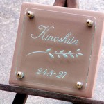 オーダーサイズの小さなガラス表札です。 テラコッタ 200×100 ガラス 180×80