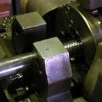 特殊な施盤で長尺の角ネジを加工しているところです。 結構、神経を使う作業です(^^;) 無垢材からすべて手作業(汎用施盤)で加工していきます。