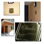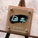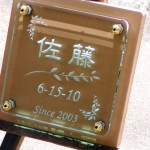 オリジナル筆書体をガラスに彫刻して、テラコッタにも影を彫刻しました。 筆書体の風合いを残すのに苦労します。 同じイメージです