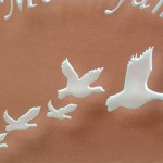 お客様のイメージ ” 5羽の鳥が同じ方向に向かって飛んでいる様子”をデザインしました。 施工写真を送っていただきました。 思い入れのある表札になりましたね(*^^)v ありがとうございました。