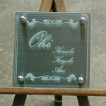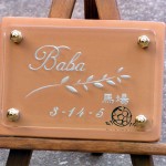 全体的な色合いを考えて製作したクリスタルガラス表札です。  2年前の作品
