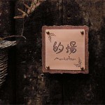 アイボリーのコテ仕上げの塀に薄茶のアンティークタイル表札