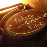 アンティークタイルにこだわりの文字とデザインを彫刻したガラスを重ねました。
