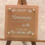 和(なごみ)書体のお名前に真鍮のプレート(番地since)と銅のクローバーをレイアウト
