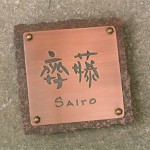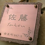 梨地仕上げの銅板に明るくいぶした銅板を重ねました。 書体はヒロノクラフトで書いてご提案する”和(なごみ)書体”です。W176XH176 ヒロノクラフト銅製ポストと一緒に取り付けられます。