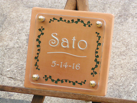 クリスタルガラス表札 2003/2/21 金曜日2012/9/20 木曜日 by miyasu クリスタルガラス表札 テラコッタにも彫刻 お待たせしました(^_^;) Re:さとう 楽しみにしていた表札に感激です。家作りの最後のメインイベントである、 『表札作り』が、とても満足いく形で、出来上がり本当に、うれしいです。 ヒロノクラフトさんのお陰です。ありがとうございました。 お仕事忙しくて大変かと思いますが、これからもステキな作品作りを頑張って 下さい。 Re:miyasu こちらこそ、ありがとうございました。 イメージ通り仕上がりましたか?また、機会がありましたらよろしくお願いします。 お問い合せ用URL : お問い合せの際に上記URLをコピーして『お問い合せ内容』に貼り付けて頂ければ幸いです