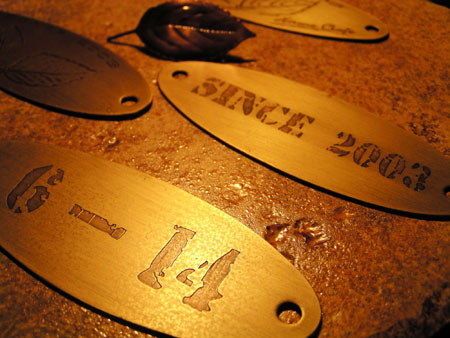 黄銅プレートを作りました 2003/3/3 月曜日2012/8/23 木曜日 by miyasu ヒロノクラフト便り 表札のアクセントとしてアレンジしていきます。 リベット留め お問い合せ用URL : お問い合せの際に上記URLをコピーして『お問い合せ内容』に貼り付けて頂ければ幸いです