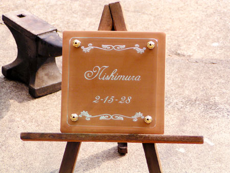 クリスタルガラス表札 2003/3/26 水曜日2012/9/20 木曜日 by miyasu クリスタルガラス表札 表札の納期は、デザイン決定後10日前後ですが、お急ぎの方はご相談ください。 お問い合せ用URL : お問い合せの際に上記URLをコピーして『お問い合せ内容』に貼り付けて頂ければ幸いです