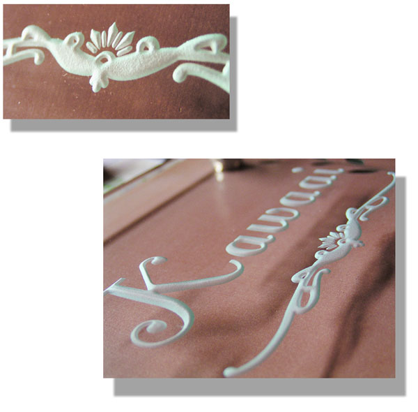 クリスタルガラス表札 2003/5/17 土曜日2012/9/20 木曜日 by miyasu クリスタルガラス表札 タイルにもアクセントを彫刻してガラスを重ねました。 細かなところまで立体的に彫刻しています。 この立体掘りが、様々な表情を作りだします。 お問い合せ用URL : お問い合せの際に上記URLをコピーして『お問い合せ内容』に貼り付けて頂ければ幸いです