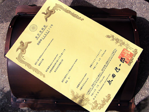 意匠登録証 登録1182713号 2003/7/19 土曜日2013/2/19 火曜日 by miyasu オリジナル銅製ポスト 銅製ポストに対する意匠登録証が届きました。 思ったより簡単な証明書でした。 お問い合せ用URL : お問い合せの際に上記URLをコピーして『お問い合せ内容』に貼り付けて頂ければ幸いです