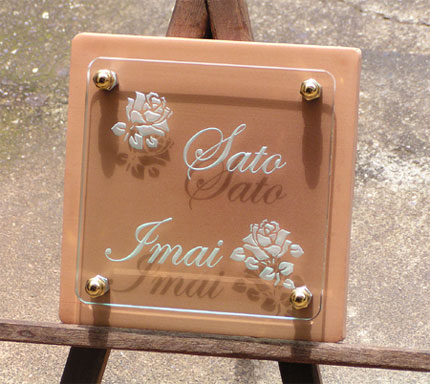 クリスタルガラス表札 2003/7/30 水曜日2012/9/20 木曜日 by miyasu クリスタルガラス表札 2世帯のガラス表札。 バラ好きのお客様のためにレイアウトしました。 お問い合せ用URL : お問い合せの際に上記URLをコピーして『お問い合せ内容』に貼り付けて頂ければ幸いです
