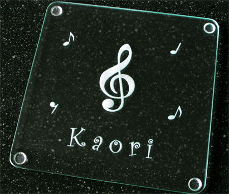 クリスタルガラス表札 2003/11/4 火曜日2012/10/1 月曜日 by miyasu クリスタルガラス表札 五線譜をテラコッタに音符をガラスに彫刻したクリスタルガラス表札です。 お客様のイメージを彫刻したガラスのマウスパッド(200X200 t5) オリジナル銅製ポストと一緒に鹿児島に送りました。 お問い合せ用URL : お問い合せの際に上記URLをコピーして『お問い合せ内容』に貼り付けて頂ければ幸いです