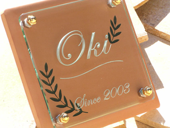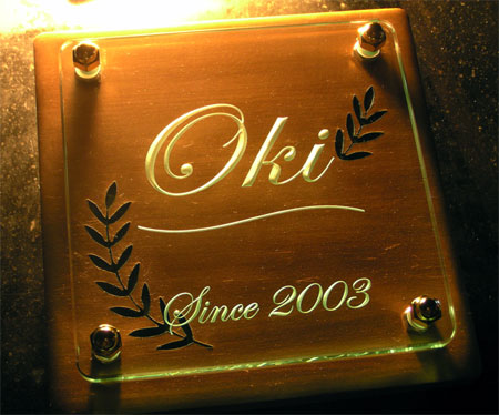 クリスタルガラス表札 2003/11/23 日曜日2012/10/1 月曜日 by miyasu クリスタルガラス表札 シンボルツリーの月桂樹をレイアウトしたクリスタルガラス表札 久しぶりに晴れたので、今日は塗装日になりました。 現在製作中の表札は休み明けに発送いたします。 お問い合せ用URL : お問い合せの際に上記URLをコピーして『お問い合せ内容』に貼り付けて頂ければ幸いです