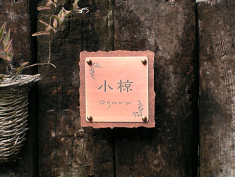 銅表札 2003/12/2 火曜日2012/9/20 木曜日 by miyasu 銅・真鍮の表札 枕木の門柱に付く予定の銅製いぶし表札です。 お問い合せ用URL : お問い合せの際に上記URLをコピーして『お問い合せ内容』に貼り付けて頂ければ幸いです
