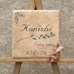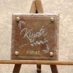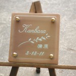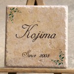 薄茶のアンティークタイルに深く文字を刻みました。