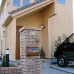 レンガの門柱に真鍮表札とオリジナル銅製ポスト・・・ インターホンカバーは製作中 表情豊かな門柱に・・・