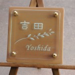 2004年最初の表札です。 線の細い手書き書体を彫刻しました。