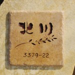 大胆な和書体をタイルに深く彫刻しました。 オリジナルの埋め込み型ポストと一緒に取り付けられます。