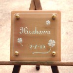 マンション用に製作したオーダーサイズのクリスタルガラス表札。 小さな表札ですが、時間をかけて作り上げました。 ベースステンレス W120XH70
