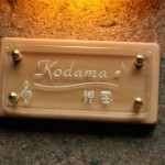 オーダーサイズの横長のクリスタルガラス表札 W200XH100 音符をレイアウト・・・