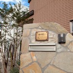 自然石の門柱に銅真鍮表札