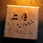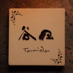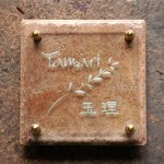 薄茶のタイルに和書体を彫刻着色し、ガラスを重ねました。 音符をさりげなく・・・