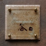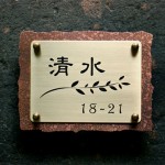 梨地仕上げのいぶし銅に真鍮を重ね、和書体でレイアウトしました。