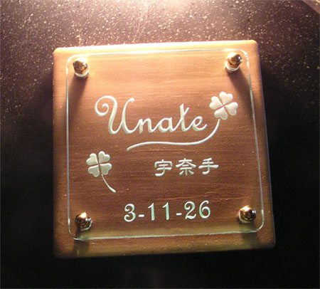 クリスタルガラス表札 2004/1/27 火曜日2012/9/21 金曜日 by miyasu クリスタルガラス表札 四葉のクローバーをデザインしました。 お問い合せ用URL : お問い合せの際に上記URLをコピーして『お問い合せ内容』に貼り付けて頂ければ幸いです