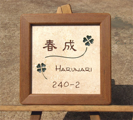 アンティークタイル表札 2004/3/15 月曜日2012/10/2 火曜日 by miyasu アンティークタイル表札【薄茶色】 アンティークタイルウッドフレームクローバーホワイト アンティークタイル(白)にクローバーのラインを・・・ 手作りのウッドフレーム(イペ材)を付けて仕上がります。 ウッドフレームが付くとイメージが変わります。 お問い合せ用URL : お問い合せの際に上記URLをコピーして『お問い合せ内容』に貼り付けて頂ければ幸いです