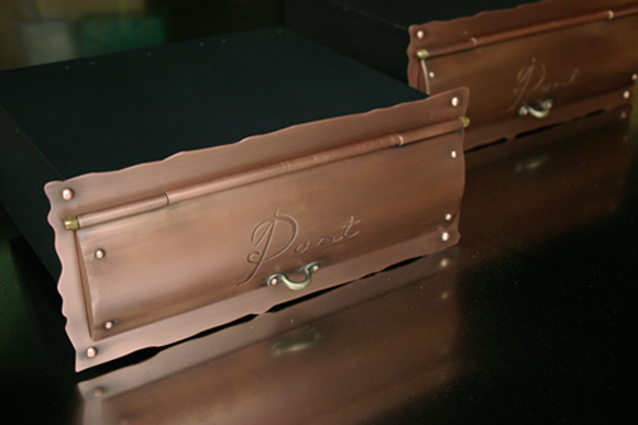 オリジナル埋め込み型銅製ポスト 2004/4/21 水曜日2012/10/2 火曜日 by miyasu 銅製ポスト 機械組み立て用精密定盤の上で組み立てています。 ご注文については、必ず納期をご確認ください。 お問い合せ用URL : お問い合せの際に上記URLをコピーして『お問い合せ内容』に貼り付けて頂ければ幸いです