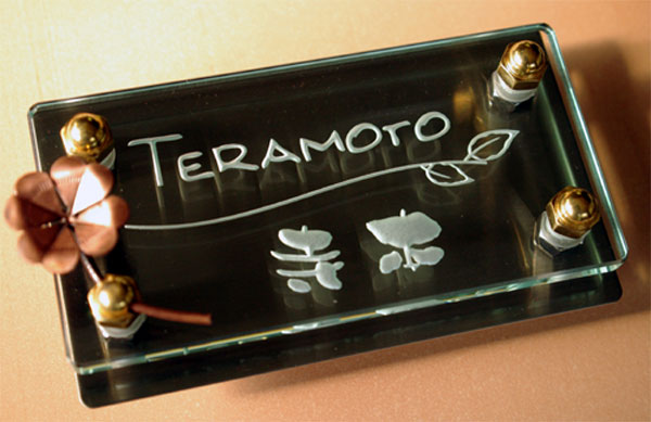クリスタルガラス表札 2004/6/9 水曜日2012/9/21 金曜日 by miyasu クリスタルガラス表札 マンション用差し替え表札を改造し銅のクローバーを取り付けました。 お問い合せ用URL : お問い合せの際に上記URLをコピーして『お問い合せ内容』に貼り付けて頂ければ幸いです
