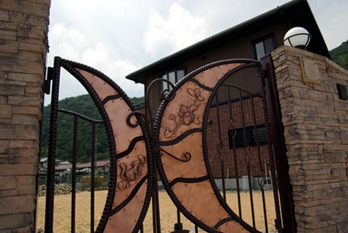 門扉製作中 2004/6/17 木曜日2012/8/24 金曜日 by miyasu ガーデン&エクステリア 親子リスの銅のレリーフをアクセントに異形丸で門扉を製作中 サイズが大きいので船舶用のメッキ処理施設で亜鉛メッキをしました。 ウレタンの艶消し塗装を施し、本日施工しました。 銅板レリーフの取り付けは支柱を固定してからになります。 ”リスをモチーフに・・・”と言うお客様のご要望で製作に取り掛かりました。 勝手口・・・ お問い合せ用URL : お問い合せの際に上記URLをコピーして『お問い合せ内容』に貼り付けて頂ければ幸いです