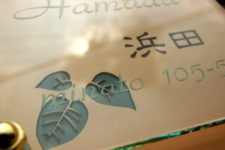 クリスタルガラス表札 2004/8/22 日曜日2012/9/21 金曜日 by miyasu クリスタルガラス表札 テラコッタタイルにポトスをイメージした葉を彫刻(緑)しました。 雲を映して・・ お問い合せ用URL : お問い合せの際に上記URLをコピーして『お問い合せ内容』に貼り付けて頂ければ幸いです