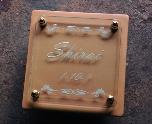クリスタルガラス表札 2004/9/16 木曜日2012/9/21 金曜日 by miyasu クリスタルガラス表札 ガラス彫刻の影で表情豊かな表札に・・・ お問い合せ用URL : お問い合せの際に上記URLをコピーして『お問い合せ内容』に貼り付けて頂ければ幸いです