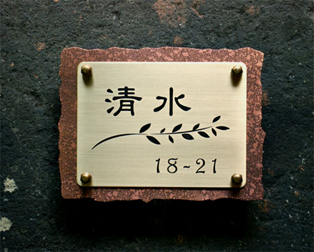 銅真鍮表札 2004/9/30 木曜日2012/9/20 木曜日 by miyasu 銅・真鍮の表札 いぶし処理の真鍮に隷書体でレイアウト お問い合せ用URL : お問い合せの際に上記URLをコピーして『お問い合せ内容』に貼り付けて頂ければ幸いです