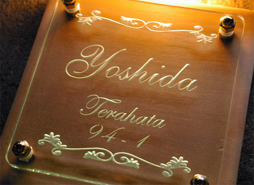 クリスタルガラス表札 2004/10/20 水曜日2012/9/21 金曜日 by miyasu クリスタルガラス表札 ガラスに良く合う筆記体でレイアウトしました。 お問い合せ用URL : お問い合せの際に上記URLをコピーして『お問い合せ内容』に貼り付けて頂ければ幸いです