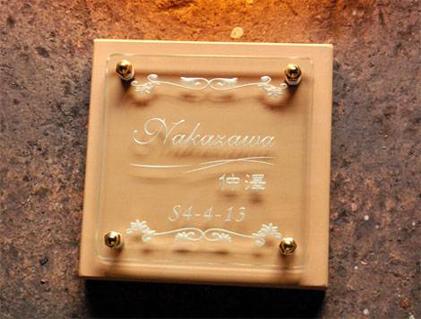 クリスタルガラス表札 オーダーサイズ 2004/11/16 火曜日2012/9/21 金曜日 by miyasu クリスタルガラス表札 ご希望のサイズで製作しました。小さなカワイイ表札に仕上がりました。 お問い合せ用URL : お問い合せの際に上記URLをコピーして『お問い合せ内容』に貼り付けて頂ければ幸いです
